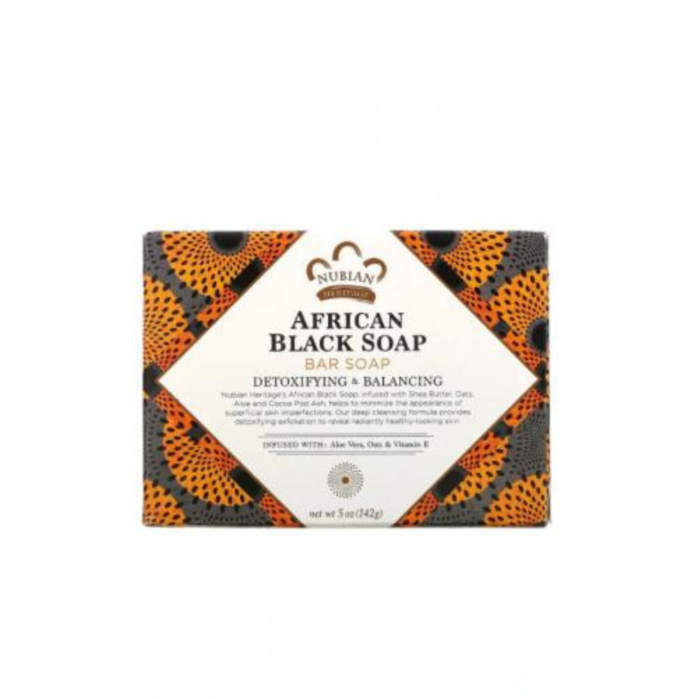 يساعد الصابون الأسود الأفريقي من Nubian Heritage الغني بزبدة الشيا، والشوفان، والصبار، ورماد الكاكاو، على تقليل ظهور العيوب السطحية للبشرة. توفر تركيبة التنظيف العميق التي نقدمها تقشيرًا لإزالة السموم من البشرة لتكشف عن بشرة ذات مظهر صحي ومتألق.